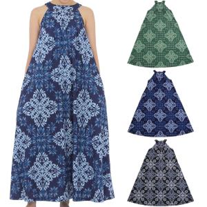 フラダンス 舞台衣装 ラウンドネック ロングドレス ポケット付き マイレキルト柄 フリーサイズ
