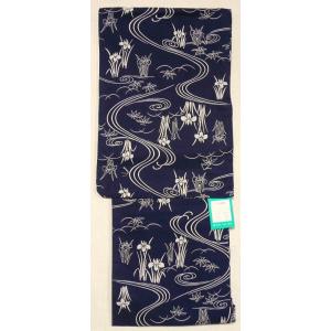 竺仙ゆかた反物コーマ地染納戸色・桔梗柄(ty0g01nf)
