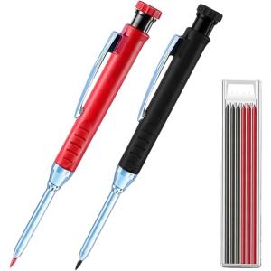 墨付け用 シャープペンシル 建築 リフォーム 職人用 現場監督用 水があっても書きやすい(ペン2本 赤 黒 替え芯6本セット)