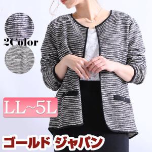 大きいサイズ レディース レディス ノーカラー ジャケット ツイード ラメ フォーマル 無地 長袖 3L 4L XXL 15号 17号 ブラック 黒 black 春 秋 冬 春秋 秋 爆買