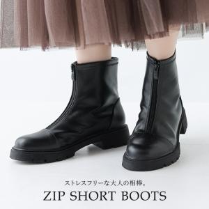ブーツ レディース アクセサリー シューズ ショートブーツ アンクルブーツ ローヒール フロントジップ 秋 冬 オシャレウォーカー「メール便不可」「80」