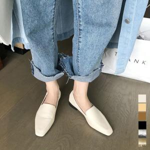 パンプス スクエアトゥ レディース 女性 靴 ローヒール フラット ぺたんこ スリッポン 無地 単色 シンプル きれいめ 上品 カジュアル