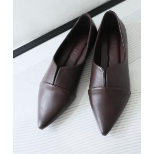 パンプス スリット切り替えデザインフラットシューズ