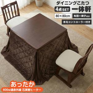 椅子付きこたつ 布団付き ダイニングこたつ4点セット 2人掛け 遠赤外線 石英管ヒーター 600w 正方形 おしゃれ 炬燵 幅80cm 一休軒
