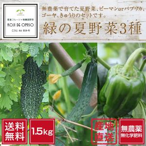 無農薬 和歌山産 朝採り緑の夏野菜(ピーマン・ゴーヤ・きゅうり)3種 約1.5kg [送料無料]■翌日受取限定 ※翌日お届け時間帯にご注意ください■