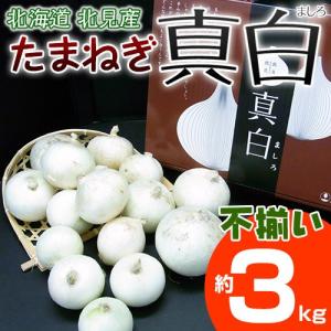 北海道北見産 玉ねぎ 『真白(ましろ)』 化粧箱 不揃い(S〜2L) 約3kg ※冷蔵 ☆