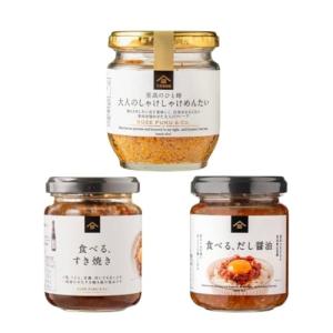 ご飯のお供 久世福商店 (3点セット, 大人のしゃけしゃけめんたい 食べる、すき焼き 食べる、だし醤油,)