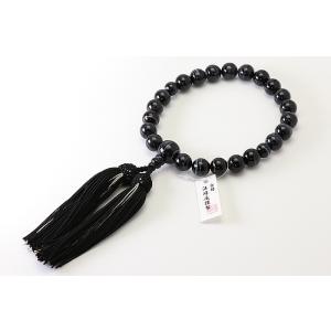 男性用高級京念珠・数珠 黒縞メノウ 共仕立て 22珠 正絹頭付房 KM030
