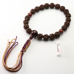 男性用高級念珠・数珠 五人羅漢彫 赤トラメ仕立て 正絹ひも房 KM039