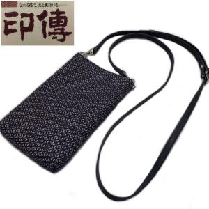 印伝 印傳屋 スマホポシェット スマホポーチ サコッシュ ポシェット ショルダーバッグ ひょうたん柄 紺地白漆 鹿革 甲州印伝 箱付き 瓢箪 紺 鞄 かばん カバン