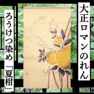 麻のれん 「夏柑」 大正ロマンのれん ろうけつ染め 手描きのれん のれん 本麻 万葉舎 生成り なつかん ロング丈 インテリア 暖簾 ロウケツ染め