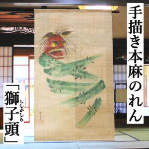 麻のれん 「獅子頭」 手描きのれん のれん 本麻 万葉舎 ししがしら 厄払い 生成り ロング丈 インテリア 暖簾 麻100% 和雑貨 縁起物 京のれん