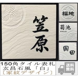 家紋デザイン表札 150角 玄昌石風表札 「白」 タイル表札 おしゃれ 和風 戸建て マンション 風水 正方形 追加マグネット可