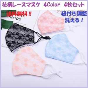 マスク 布製 洗える おしゃれ レース セット 送料無料 洗えるエコマスク各色1枚 4枚組 レース風 ファッションマスク