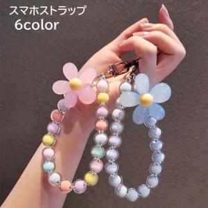 スマホストラップ ハンドストラップ 携帯ストラップ リストストラップ ビーズ 花 フラワー 手首 落下防止 携帯電話 スマートフォン かわいい おしゃ