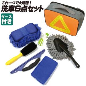 洗車セット 6点 車 洗車用品セット 初心者向け 車内外対応 収納バッグ付 クロス30cm モップ スポンジ ブラシ 耐久再利用可
