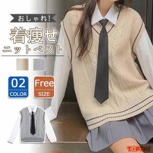 上品 女子 学生 制服 ニット スクール セーター ノースリーブ 春 秋 JK 通学 高校生 体型カバー 通勤 着痩せ ニットベスト レディース Vネック ネクタイ 白
