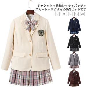 女子高生 制服 5点セット ブレザー スカート チェック柄 長袖シャツ JK服 スクール 制服 上下セット スカートスーツ 女の子 スーツ 中学生 高