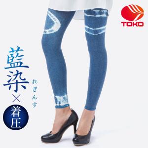 着圧レギンス×藍染/柄:二輪 S/M/Lサイズ (メーカー名:東光株式会社)