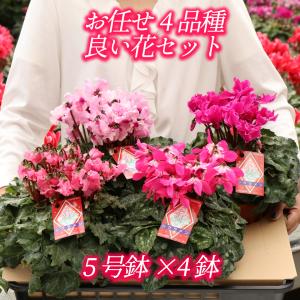 シクラメン 5号 お任せ4種セット 鉢 花 ギフト 鉢植え 赤 白 ピンク 紫 お歳暮 贈答 生花 クリスマス プレゼント 送料無料 ガーデン 直売 お祝い 誕生日 祝い