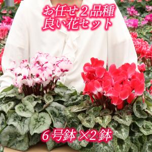 シクラメン 6号 お任せ2種セット 鉢 花 ギフト 鉢植え 赤 白 ピンク 紫 お歳暮 贈答 生花 クリスマス プレゼント 送料無料 ガーデン 直売 お祝い 誕生日 祝い