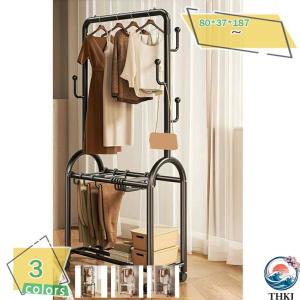 ハンガーラック 衣服掛け キャスター付き 収納ラック 壁際掛け物 掛け収納 洋服掛け キャスター付き 衣類収納 省スペース 軽量寝室 リビング 洋服掛け ブラック