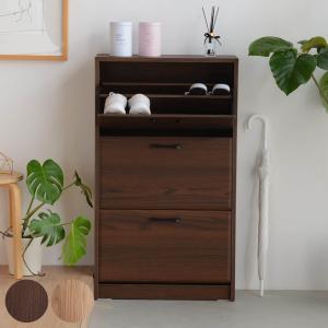 シューズラック 2段 オーク柄 ナチュラルデザイン 幅64cm ( 下駄箱 靴 収納 玄関 くつ入れ スリム スラップ扉 幅64 奥行24 )