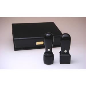 【送料無料!】法人印2本セット 黒水牛 丸印18mm・角印21mm【印章ケース付でお買い得!】