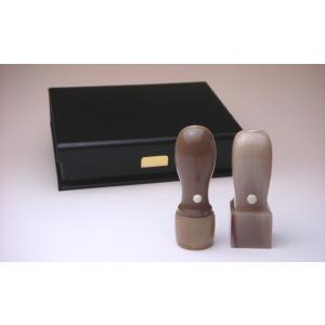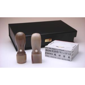 【送料無料!】法人印2本セット 牛角(色混) 丸印18mm・角印21mm【印章ケース付でお買い得!】