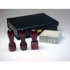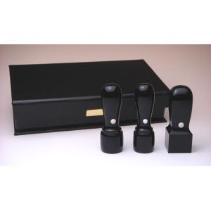 【送料無料!】法人印3本+ゴム印セット 黒水牛 丸印18mm/16.5mm・角印21mm【印章ケース付でお買い得!】
