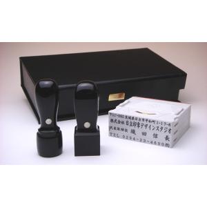 【送料無料!】法人印2本+ゴム印セット 黒水牛 丸印18mm・角印21mm【印章ケース付でお買い得!】