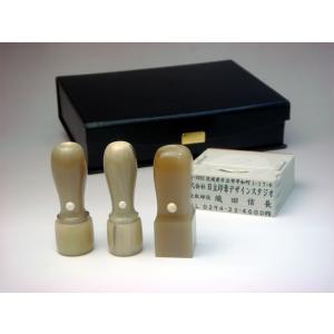 【送料無料!】法人印3本+ゴム印セット 牛角(色混) 丸印18mm/16.5mm・角印21mm【印章ケース付でお買い得!】