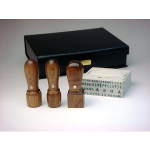 【送料無料!】法人印3本+ゴム印セット 智頭杉(ちずすぎ) 丸印18mm/16.5mm・角印21mm【印章ケース付でお買い得!】