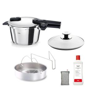 フィスラー 公式 圧力鍋 スターターセット(ビタクイック 4.5L・ガラスフタ・穴あき蒸し器・ステンレスクリーナー、ステンレス製スポンジ) 173025