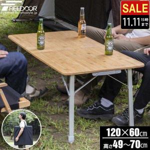 アウトドアテーブル 折りたたみ 幅120cm 高さ調節可能 キャンプ 在宅勤務 テレワーク レジャーテーブル ピクニック デスク バンブー FIELDOOR 1年保証 送料無料