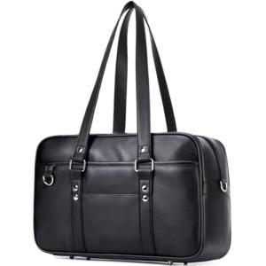 [CHUULII] スクールバッグ スクバ 合皮 女子 高校生 学生 JK 通学 通塾 ボスドンバッグ 大容量 肩紐長い (ブラック)