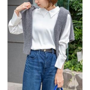ブラウス シャツ 「WEB限定」ウォッシャブルオトナサテン衿カフス付きTブラウス レディース