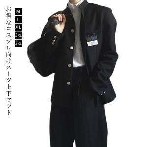 学ラン 男装 コスプレ 制服 学生 衣装 男子 仮装 学校 高校生 応援団 学生服 ユニセックス コスチューム 上下セット(2XL)