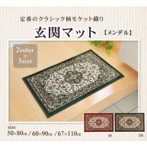 洗濯機で洗える モケット織り玄関マット 滑り止め付き クラシック柄 約60×90cm メンデル (I) 引っ越し 新生活 ポイント利用 爆買