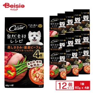 シーザー自然素材レシピ 蒸しささみ・厳選ビーフ&パプリカ・いんげん 60g×4袋 ×12 ペット