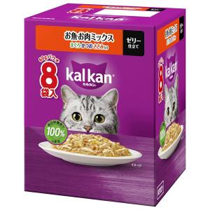 【8袋入】マース カルカンパウチ ゼリー仕立て お魚・お肉ミックス まぐろ・かつお・ささみ入り 60g×8袋(キャットフード 総合栄養食)