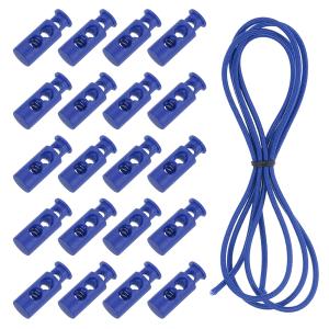 uxcell 20個 ダブルホールコードロックと39" 弾性ショックコード プラスチック製 スプリングトグルストッパークリップと伸ばしストリング 青い