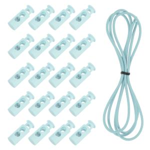 uxcell 20個 ダブルホールコードロックと39" 弾性ショックコード プラスチック製 スプリングトグルストッパークリップと伸ばしストリング 青緑