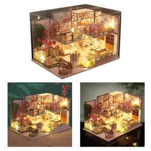 3Dドールハウスミニチュア家具セットdiy木製ドールハウスキットプラス防塵 & ledライトクリエイティブのための部屋女の子