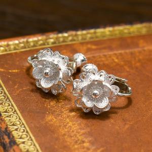 フィリグリー プチフラワー イヤリング 美しい手仕事の繊細な銀線細工 ジョグジャカルタ