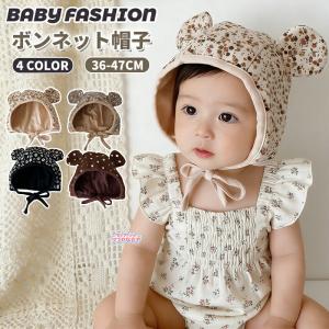 ベビー ボンネット帽子 赤ちゃん くま耳ボンネット 防風 キッズ パイロット 帽子 ストラップ付き ドット 小花柄 新生児 0-1歳 おしゃれ キャップ SNS映え 春夏秋