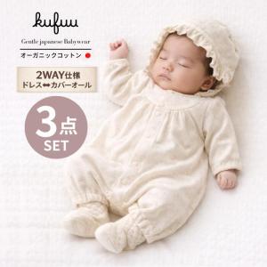 ベビードレス 【天竺 2WAYオール3点セット】セレモニードレス 靴下 新生児 退院 お宮参り 日本製 オーガニックコットン 50-70cm 男の子 女の子 春 夏 秋 クフウ