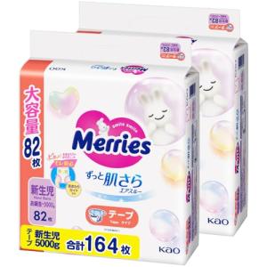 メリーズ Merries 【テープ 新生児用】 オムツ さらさらエアスルー (お誕生~5000g) 164枚 (82枚×2) [ケース品] 【