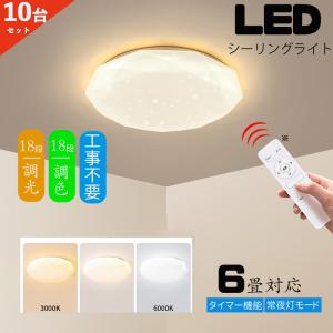 シーリングライト led 6畳 調光 薄形 リモコン付き LED照明器具 照明器具 天井照明 6畳用 おしゃれ 常夜灯 OFFタイマー洋室 和室 6畳用 工事不要 10台セット