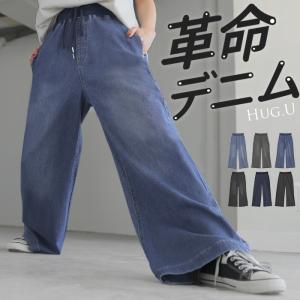 パンツ デニム スウェット デニムパンツ レディース ワイドパンツ ワイド ジーンズ ジーパン 体型カバー